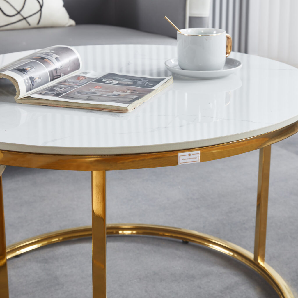 Voeg elegantie en functionaliteit toe aan uw woonruimte met deze strakke, moderne salontafel. Gebouwd met hoogwaardige Marmerlook Steenblad met metalen poten, is het de perfecte combinatie van stijl en functionaliteit voor elke kamer.